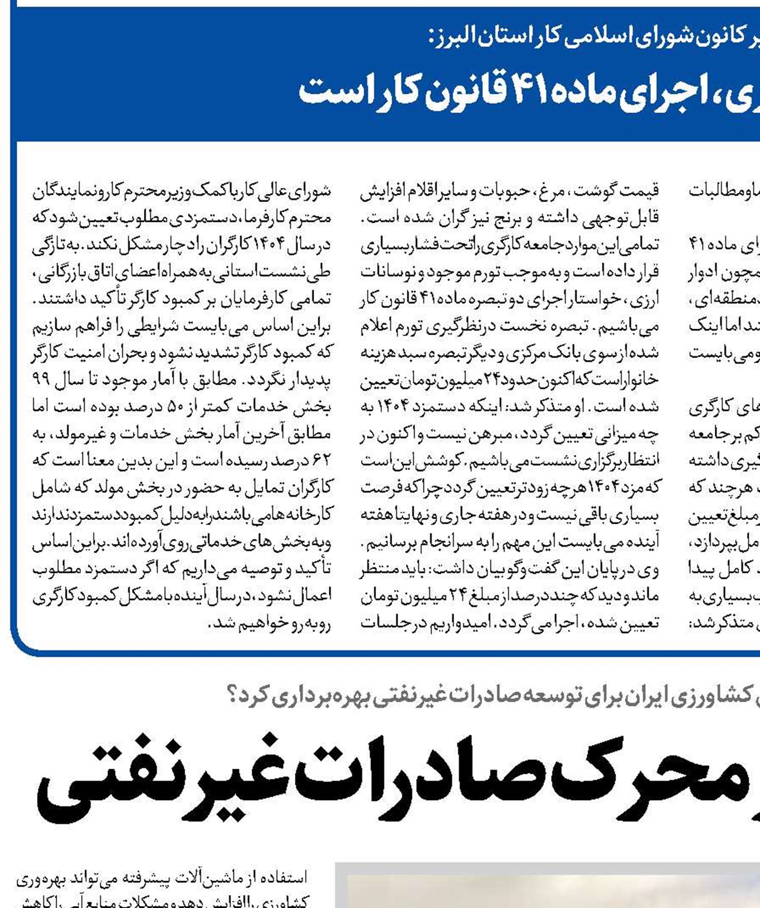 بخش کشاورزی با توجه به منابع طبیعی غنی، اقلیم متنوع و نیروی انسانی متخصص، یکی از مهمترین و بالقوهترین بخشها برای توسعه صادرات غیرنفتی به شمار میرود. این بخش بهویژه در زمینه تولید محصولات باغی، زراعی و دامی توانسته است در بازارهای جهانی بهعنوان یک رقیب جدی شناخته شود. محصولات استراتژیک همچون پسته، خرما، زعفران، سیب و کشمش، تنها برخی از محصولاتی هستند که کشور بهطور گستردهای آنها را تولید میکند و بازارهای بینالمللی نیز از تقاضای بالایی برای این محصولات برخوردار هستند و به طورکل نیز پتانسیلهای بخش کشاورزی در توسعه صادرات غیرنفتی بهقدری چشمگیر است که میتواند بهعنوان یکی از ارکان اصلی افزایش درآمدهای غیرنفتی کشور، کاهش وابستگی به نفت و تقویت تراز تجاری عمل کند. همچنین، تقویت صادرات کشاورزی میتواند با ایجاد اشتغال پایدار در مناطق روستایی، بهبود معیشت کشاورزان و کمک به رشد اقتصادی در مناطق مختلف کشور، تأثیرات مثبت گستردهای بر اقتصاد ملی بگذارد. بااینحال، برای بهرهبرداری بهینه از این ظرفیتها، لازم است که دولت بهطورجدی به حل چالشهای موجود در این بخش بپردازد. مشکلاتی نظیر کمبود زیرساختهای مناسب برای بستهبندی و حملونقل، بحران کمآبی، استفاده ناکافی از فناوریهای نوین و عدم توسعه فرآوری محصولات کشاورزی، میتوانند مانع از رشد و توسعه صادرات کشاورزی شوند. در این راستا، دولت و بخش خصوصی باید همگام با یکدیگر، اقداماتی جدی برای حل این مشکلات انجام دهند. سرمایهگذاری در زیرساختها، توسعه سیستمهای آبیاری مدرن، بهکارگیری فناوریهای جدید در کشاورزی، بهبود فرآوری و بستهبندی محصولات، ارتقای سطح آموزش کشاورزان و ایجاد شبکههای بازاریابی بینالمللی میتواند بهعنوان راهکارهایی کلیدی در توسعه صادرات کشاورزی مطرح شود. همچنین، شناخت و دسترسی به بازارهای جدید و متنوع، میتواند کشور را از وابستگی به برخی بازارهای خاص رها کند و موقعیت کنونی را در عرصه صادرات کشاورزی بهطور قابلتوجهی تقویت کند. در نهایت، در صورت اتخاذ سیاستهای صحیح و هماهنگی میان ارگانهای دولتی و بخش خصوصی، قادر خواهیم بود که جایگاه خود را بهعنوان یکی از صادرکنندگان پیشرو در حوزه محصولات کشاورزی در سطح جهانی تقویت کنیم و از ظرفیتهای عظیم این بخش برای رشد اقتصادی و ارتقای سطح معیشت مردم بهرهبرداری بداریم.