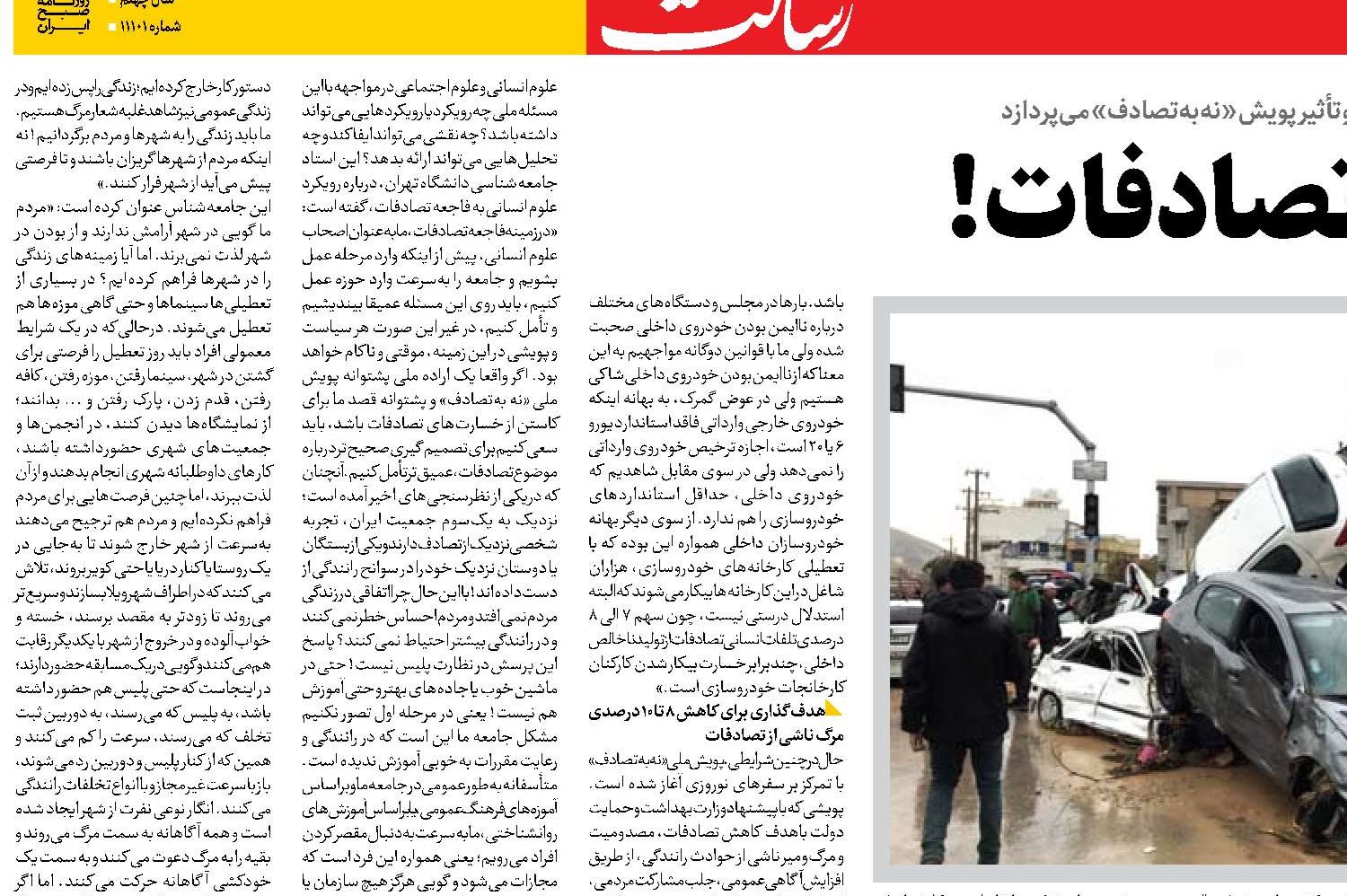 «رسالت» در آستانه سال نو به بررسی تصادفات در کشور و تأثیر پویش «نه بهتصادف» میپردازد