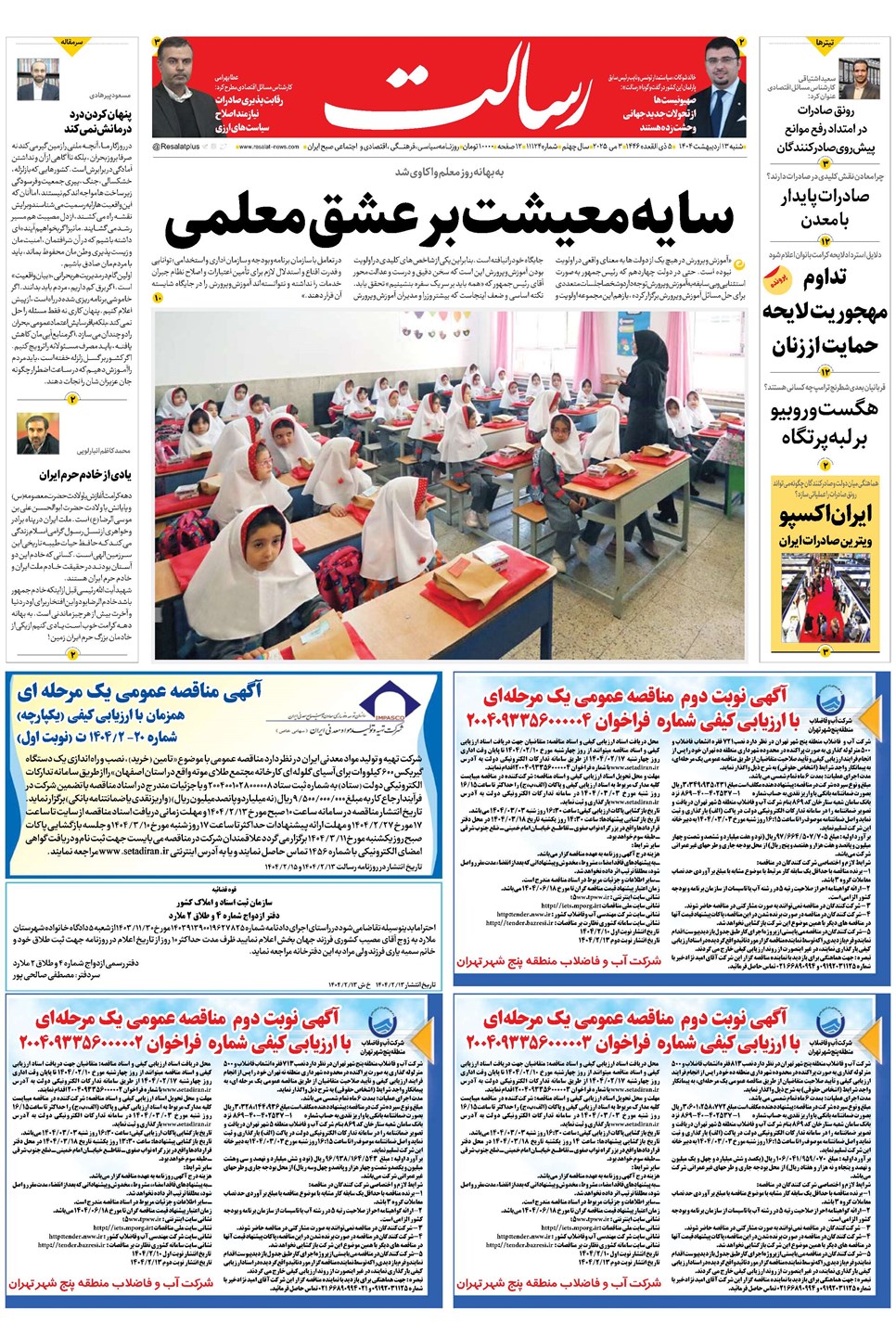 روزنامه تاریخ ۱۴ اردیبهشت ۱۴۰۴