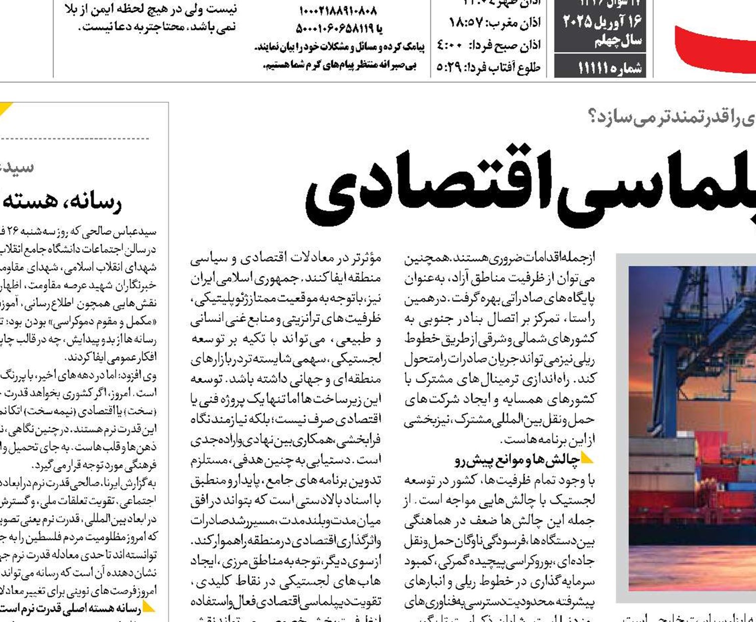 دیپلماسی اقتصادی بدون قدرت لجستیکی، دچار ضعف عملکردی خواهد شد. توانمندی در صادرات منظم و سریع، خود نوعی امتیاز سیاسی محسوب میشود. کشوری که میتواند در کوتاهترین زمان نیازهای بازارهای منطقهای را پاسخ دهد، در تعاملات اقتصادی دست بالاتر را خواهد داشت. اتصال ایران به کریدورهای مهمی مانند شمال-جنوب، شرق-غرب و راه ابریشم جدید، فرصت طلایی برای تبدیل زیرساخت به ابزار سیاست خارجی است. امروز نهتنها کشورهایی نظیر چین، هند و روسیه، بلکه کشورهای آسیای میانه و قفقاز نیز به دنبال مشارکت با ایران در مسیرهای لجستیکی هستند. بنابراین تقویت این مسیرها، همافزایی اقتصادی برای کشور به همراه خواهد داشت.